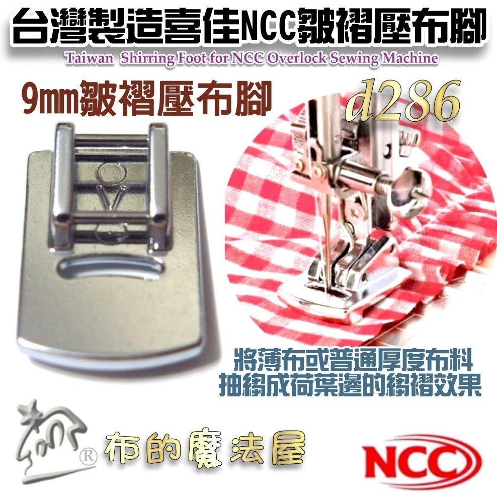 【布的魔法屋】d286-台灣製造喜佳NCC皺摺壓布腳V 適兄弟牌Brother等 9mm機型 家用縫紉機打摺皺褶壓布腳