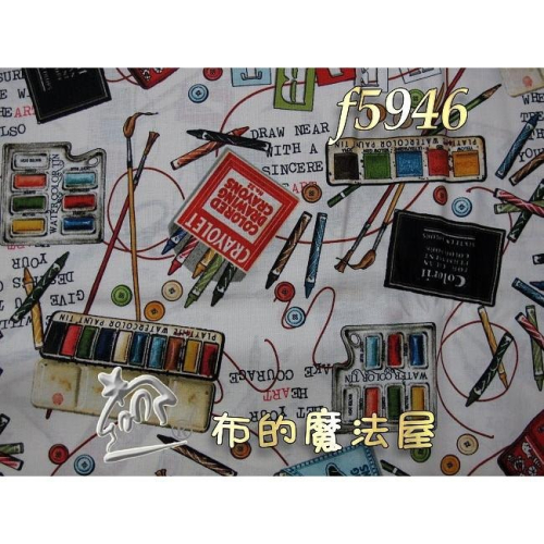 【布的魔法屋】f5946異國風繪本生成水彩筆進口純棉布料(拼布布料/拼布材料/手工藝材料,可作拼布包包拼布被)