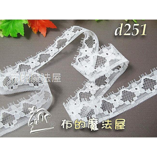 台灣製造【布的魔法屋】d251-白色2cm寬洋裁蕾絲(服飾服裝衣服花邊蕾絲,婚紗蕾絲,窄版蕾絲,拉雪兒蕾絲)