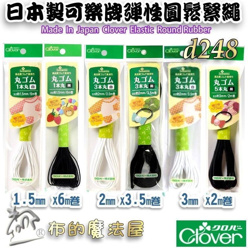 ● ╭*產品簡介。 報價為單色1卷價。 有黑.白二色與三款1.5mm~3mm 圓俓規格尺寸。 產品特色: 產地:日本 品牌:可樂牌 Clover 產品尺寸:直徑: 1.5~3mm。三款規格尺寸。 材料 : 線/聚酯纖維,橡膠/天然橡膠 單位 :  1包 d248-1白 直徑1.5mm X 長6m/卷 d248-2黑   直徑1.5mm X 長6m/卷 d248-3白   直徑2mm X 長3.5m/卷 d248-4黑   直徑2mm X 長3.5m/卷 d248-5白   直徑3mm X 長2m/卷 d248-6黑 直徑 3mm X 長2m/卷 ☆ 本款日本製可樂牌彈性鬆緊繩( Clover Japan Clover String  Round  Elastic  Rope ) 是一款舒適伸縮率鬆緊帶,好用彈性佳,具有良好彈性的橡膠,手感非常軟。 用於擠壓袖口和頭髮鬆緊帶。優質橡膠線,經久耐用,彈性極佳 - 布的魔法屋。 ☆ 本賣場2.5mm鬆緊繩.口罩繩所有顏色系列 >  ☆ 還有 1mm鬆緊繩.所有顏色系列 >  ☆ 本款彈性鬆緊繩口罩繩有24款顏色任您挑選, 適合應用髮飾鬆緊繩,髮飾DIY彈性繩,串珠鬆緊繩,編織繩,拼布鬆緊繩,洋裁鬆緊繩等多款創作素材-布的魔法屋。 ☆ 賣場鬆緊繩.鬆緊帶所有顏色系列 >  ☆ 賣場還有素色臘繩.彩色段染臘繩 >  ☆ 本賣場還有台灣製造平織慢板鬆緊帶(plain elastic tape), 加工細緻,高品質可靠。尺寸如圖有4mm, 10mm, 12mm, 19mm, 25mm等寬度, 顏色有黑色與白色多款任您挑選-布的魔法屋。 ☆ 如圖賣場還有其他YKK扣具包含各類拼布包包背帶配件,有口型環,日型環,D型環,旋轉扣環,安全帽與背包旁開扣等多款配件! YKK扣具尺寸:  2cm, 2.5cm, 3cm, 3.8cm, 5cm 種類: 口型環,日型環,旋轉扣環,旁開扣等.. 如圖:織帶可搭配YKK扣具等配件,讓您的創作更豐富。