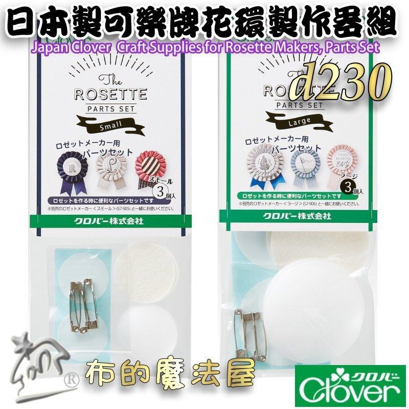 ●╭*產品簡介。 單款1包3入組價 。 共二款可以選購。 每款: 材料組(中心部品、固定貼紙2張、胸針、胸針座)共3組。可做3個徽章。 d230-1: 小 用15mm/18mm寬的緞帶製做完成尺寸約4.5cm/5cm。 d230-2: 大 用24mm/36mm寬的緞帶製做完成尺寸約8cm/9cm。 產地:日本 品牌 : Clover 可樂牌 包裝內容:3 套部件(中心部件、2 個固定貼紙、胸針、胸針支架)。          可製作 3 個玫瑰花結徽章。 ☆  布的魔法屋提供日本製Clove可樂牌3入組花環製作器組 ( Japan Clover 57-907 57-908 57907 57908 Craft Supplies for Rosette Makers) ,做徽章的便利材料組。必須與的手作徽章製作器一起使用。材料組(中心部品、固定貼紙2張、胸針、胸針座)共3組。可做3個徽章 - 布的魔法屋。 做法: 1. 把緞帶裝在手作徽章製作器上。 2. 貼上固定用貼紙後,把緞帶從徽章製作器上取下。 3. 用白膠把中間的部品跟胸針座貼合即可。    ☆  還有其他各類台式包釦(有腳含墊片),日式包釦片(無腳無墊片),造型包釦,花形包釦,新形包扣,方型包扣,梨形包扣片.日本鋁包釦...等多樣化的造型和尺寸任您挑選。    ☆  所有賣場包扣.包釦片系列   > 日本製Clove可樂牌3入組花環製作器組使用方法~