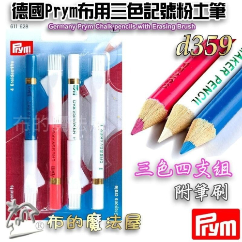 【布的魔法屋】d359-德國Prym布用10cm三色記號粉土筆組 附筆刷四入裝 附刷粉土筆粉筆 拼布記號筆 粉式記號筆