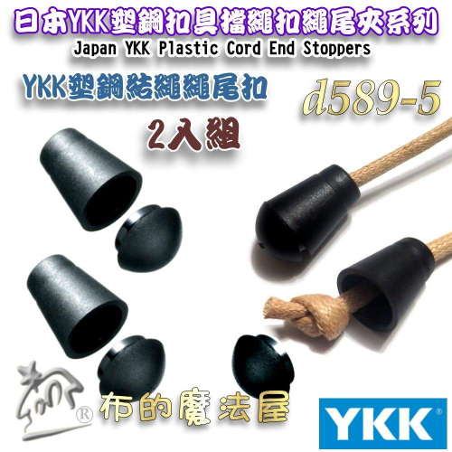 【布的魔法屋】d589-5黑色2入組YKK塑鋼扣具結繩繩尾扣 收尾扣繩索扣日本YKK集團高品質扣具 繩頭固定扣鬆緊扣傘扣