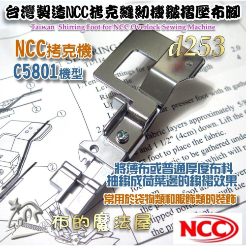 【布的魔法屋】d253-台灣製造喜佳NCC皺摺壓布腳 適拷克機CC5801打摺皺褶壓布腳 皺摺壓腳 皺折壓腳 摺景壓布腳