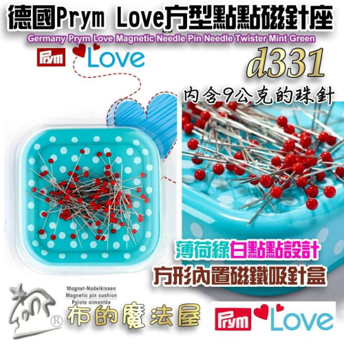 【布的魔法屋】d331-德國Prym Love薄荷綠方型點點磁針座-附贈珠針 磁針盒磁性收納盒 磁力吸針盒磁鐵磁針凹槽盒