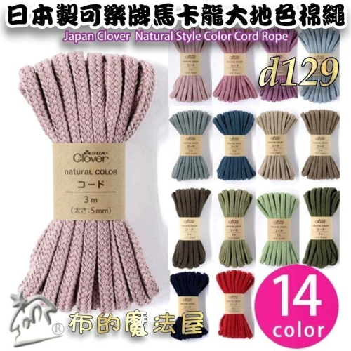 ● ╭*產品簡介。 報價是單色1組價。  可樂牌:直徑約 5mm (0.5公分), 可樂牌:3M(300公分)/組,   台灣製: 直徑有 5mm (0.5公分)與 3mm (0.3公分), 3碼(270公分)/組 (多組不裁開) 請確認好要的直徑再購買喔!  ■ 產地品牌:日本可樂牌. 台灣 ■ 材質:壓克棉繩 ■ 直徑:5mm (0.5公分), 3mm (0.3公分)二款 ■ 長度:可樂牌:3M(300公分)/組, 台灣製:3碼(270公分)/組 ■ 產品應用   :  縮口束口繩、馬卡龍色束口繩 縮口袋綿繩.. ☆ 如圖: 棉繩有14款顏色任您挑選-布的魔法屋。 ☆ 本賣場還有日本進口素色皮棉繩所有顏色  ☆ 還有彩色段染皮棉繩  ☆ 本款日本製可樂牌自然風大地色棉繩 (Japan Clover 26-189 26-190 26-191 26-192 26-193 26-194 26-195 26-196 26-197 26-198 26-199 26-200 26-254 26-255 Natural Color Cord Roll) 是自然大地色棉繩,用於錢包束口包繩等包。 手感柔軟,經久耐用,可水洗。易於與自然品味面料搭配的自然色彩。 它耐日曬和水洗不褪色,質地柔軟耐用,非常適合兒童使用。這是一款非常適合手工藝品,如束帶袋和兒童托兒用品等手工藝品 - 布的魔法屋。 ☆ 賣場還有各類臘繩.鬆緊繩.鬆緊帶.進口皮棉繩.麻繩.等多款各式繩帶類任您挑選。  ☆ 所有鬆緊帶.縮口繩.麻繩分類