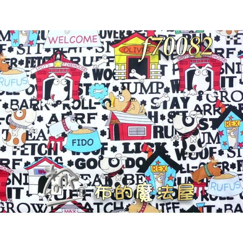 【布的魔法屋】f70082繪本白色寵物狗兒進口布料純棉布料(拼布布料/拼布材料/手工藝材料)
