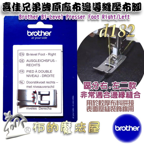 【布的魔法屋】d182-喜佳兄弟牌原廠Brother布邊導縫壓布腳右-附說明書 適合邊緣縫合兄弟牌勝家車樂美等縫紉機適用
