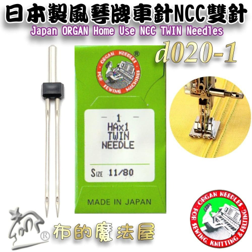 【布的魔法屋】d020-1日本製 風琴牌NCC雙針全迴轉車針 11號雙針 2本針 Organ 喜佳NCC機縫針 防皺摺針