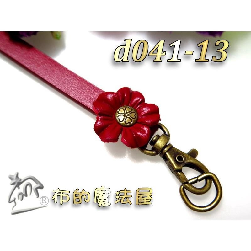 【布的魔法屋】d041-13台灣製造紅色15*0.9cm附鉤+鑰匙圈小花雙面牛皮小小真皮提把(台灣製拼布手機袋掛鉤吊飾)