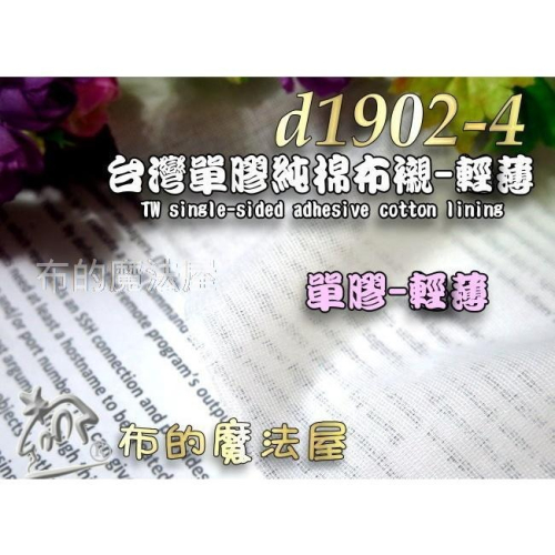 【布的魔法屋】d1902-4台灣製造白色單膠純棉輕薄布襯-輕薄 台灣棉布襯 喜佳布襯,單膠布襯 棉質布襯,單面膠薄襯