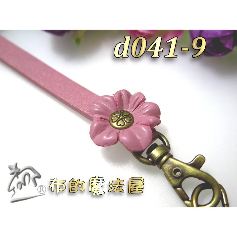 【布的魔法屋】d041-9台灣製造 暗粉15*0.9cm附鉤+鑰匙圈小花雙面牛皮小小真皮提把(台灣製拼布手機袋掛鉤吊飾)