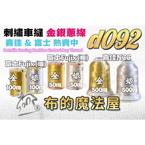 ☆ 本款日本原裝FUJIX METALLIC富士金蔥線銀蔥線機縫線( Japan Fujix Embroidery Glitter Sewing Thread)。正宗的日本原裝系列FUJIX富士金蔥線銀蔥線,無論是直線,曲線,都可順暢車縫. 可做為作品的裝飾車縫.用於機縫、十字刺繡,法式刺繡金屬鉤珠線等。無論是直線製還是鋸齒封邊均可隨意自如使用的,這才是真正的金、銀縫紉機線-布的魔法屋。
