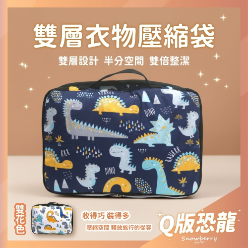 【雪瑞 Snowberry】Q版恐龍 衣物壓縮袋 旅行收納袋 雙層 壓縮包 出國旅行 換季收納 盥洗包 衣物整理 行李