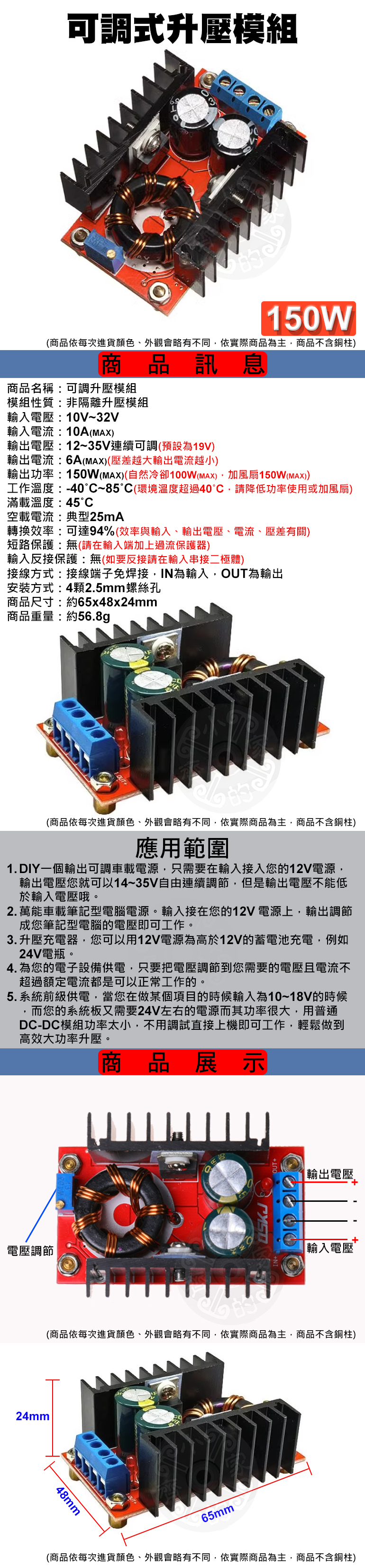DC-DC 150W 升壓模組 10-32V轉12-35V 可調