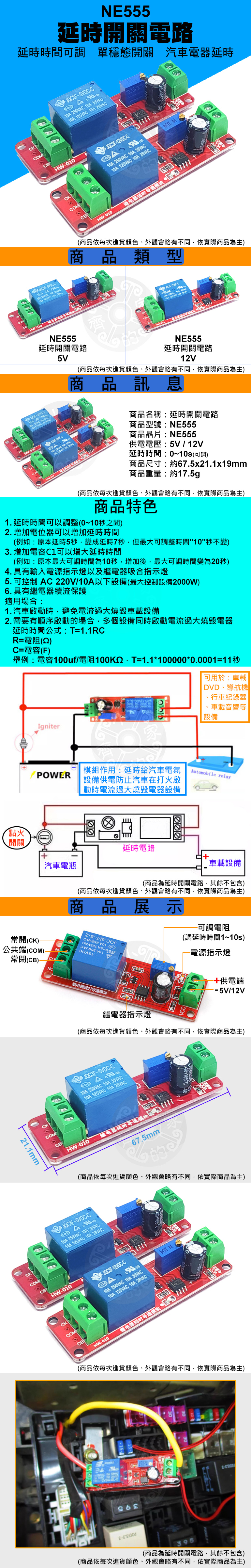 NE555延時繼電器模組 12V / 5V 商品說明: