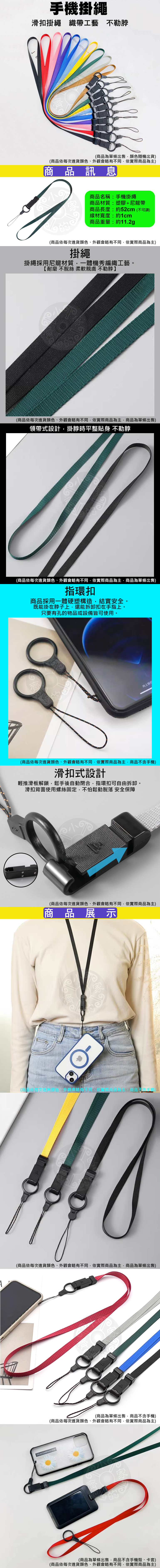 滑扣式 手機寬版掛繩 黑色 長約52cm/寬約1cm