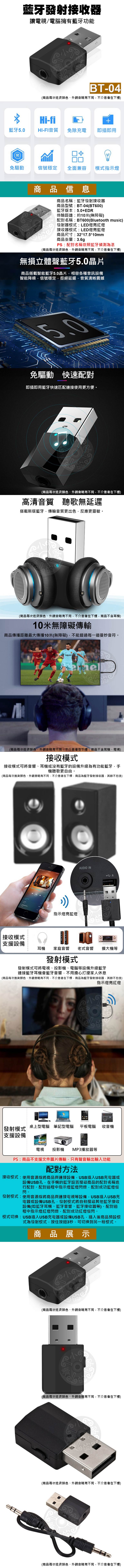 ●內容物:BT-04*1 / 3.5mm音源線*1 / 說明書*1