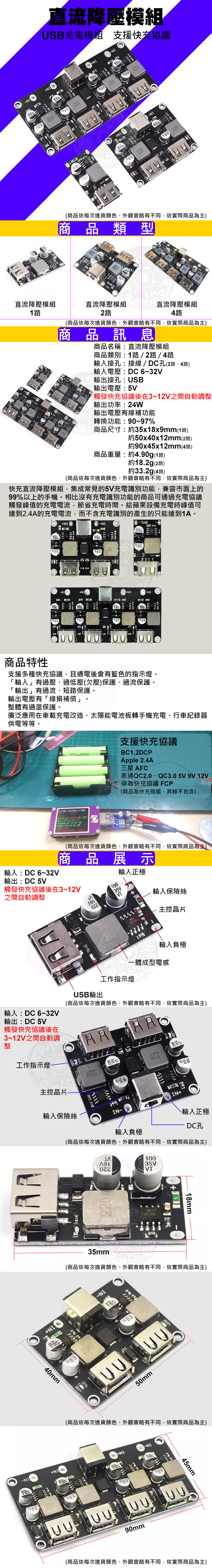 1路 / 2路 /4路快充模組 6~32V 轉 5V