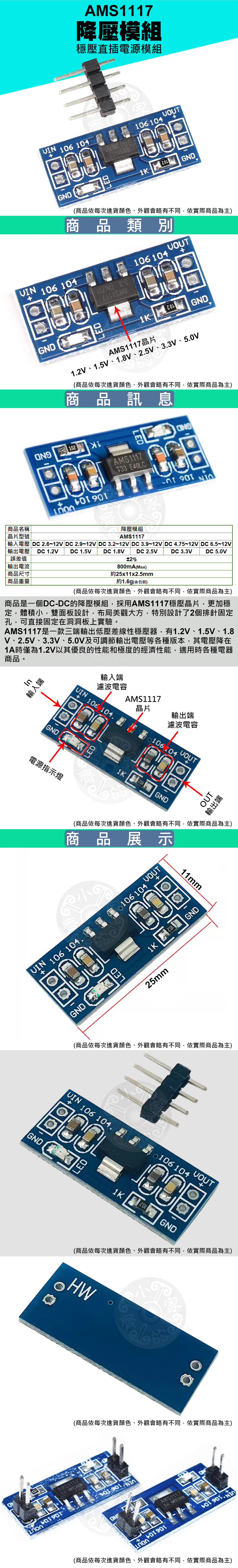 AMS1117 穩壓降壓模組 1.2v/1.5v/1.8v/2.5v/3.3v/5v
