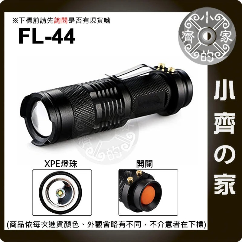 3號電池 高亮度 XPE 迷你LED手電筒 伸縮變焦 迷你手電筒 防身 照明燈 FL-44 小齊的家