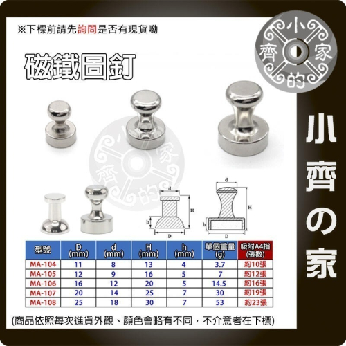 金屬磁圖釘 MA-104 105~108 25x20 30x25磁鐵圖釘 強磁圖釘 辦公磁釘 教學白板磁扣 磁石小齊的家