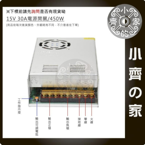 15V 30A 450W 電源供應器 110V 220V 轉 15V 變壓器 LED 招牌燈 警報器 監控 鐵殼小齊的家
