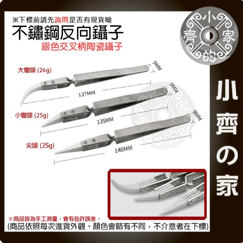 不鏽鋼反向陶瓷鑷子防鏽、防靜電尖頭、小彎頭、大彎頭訂單商品金額滿50元以上,才會安排出貨(不包含運費金額)