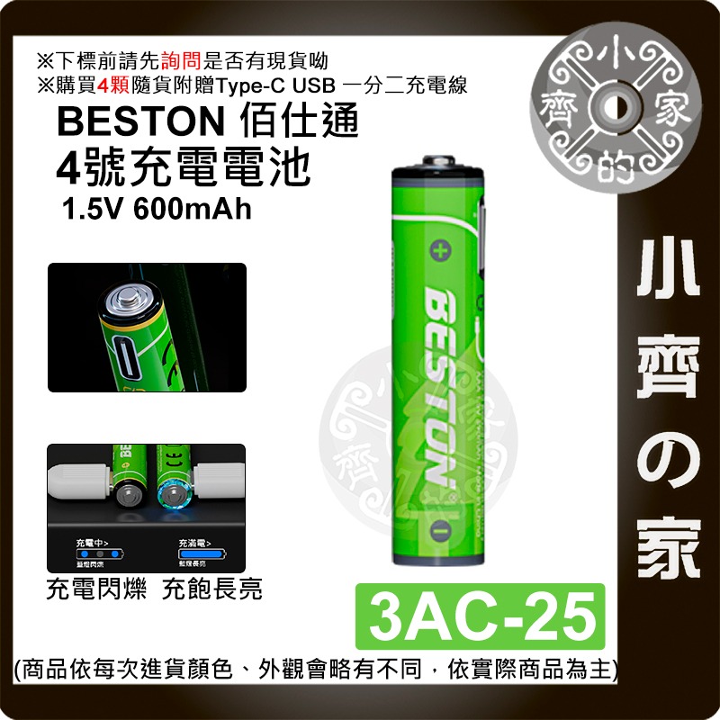 【現貨】 佰仕通 3AC-25 恆壓 1.5V 4號 鋰電池 Type C 充電 900mWh 麥克風 血壓計 小齊的家