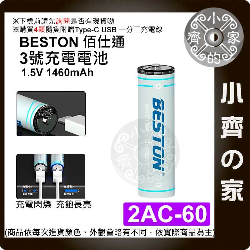 【快速出貨】 Beston 2AC-60 3號 鋰電池 1.5V 2200mWh 恆壓 USB-C 充電 玩具 小齊的家