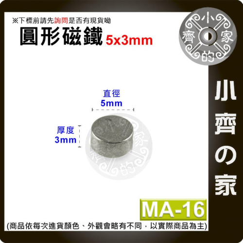 台灣現貨 MA-16 圓形磁鐵5x3 直徑5mm厚度3mm 釹鐵硼 強磁 強力磁鐵 圓柱磁鐵 實心磁鐵 磁石 小齊的家