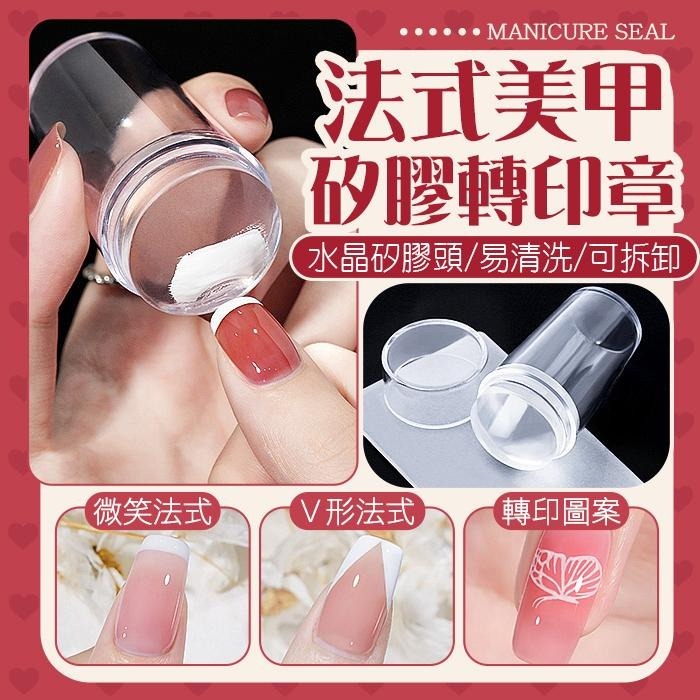 美甲法式印章 透明矽膠轉印章 矽膠取圖章 帶蓋附刮刀 硅膠轉印章 轉印鋼板NailsMall
