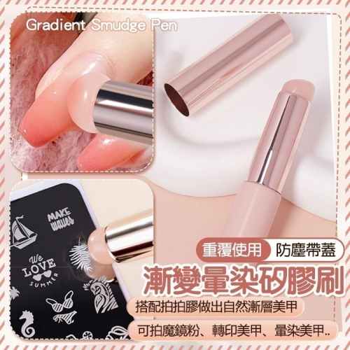 一筆多用,操作簡單可重復使用 筆刷為飽滿Q彈坡形矽膠頭貼合甲面 可做出自然暈染、腮紅美甲 亦可使用於蹭魔鏡粉,壓花、轉印美甲.. |