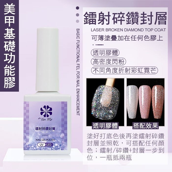 🔷【商品介紹】配合不同底色 就有不同色的鐳射碎鑽膠效果 一瓶搞定
