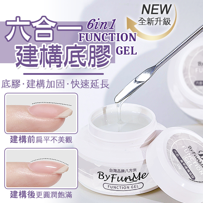 建構底膠 六合一建構塑形底膠 流平塑型膠 多功能 基礎膠 流平加固高透美甲凝膠NailsMall