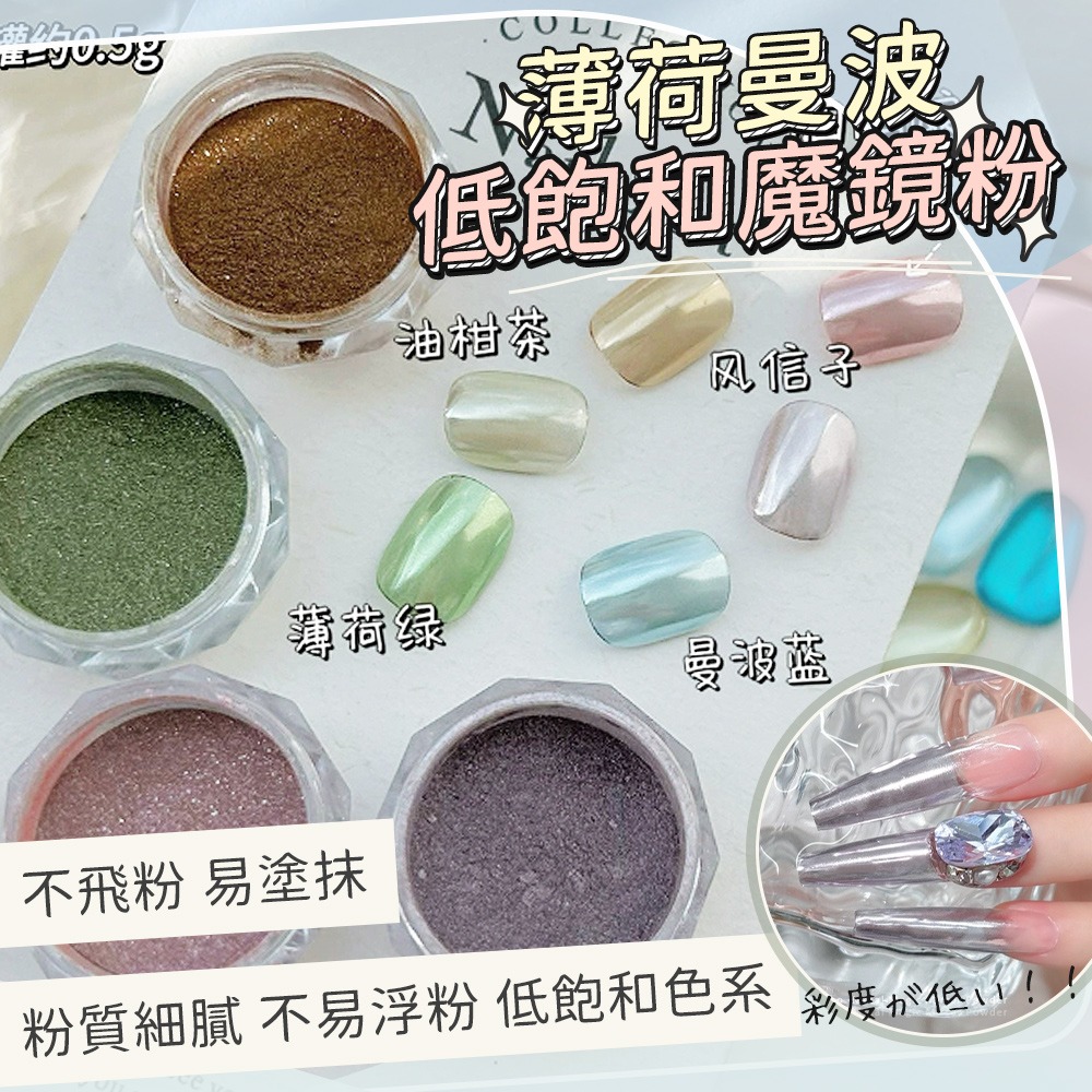 | 說明 | 夏日少女感顯白鏡面粉 低飽和顏色給人溫柔、清新的感覺 細緻粉質, 帶來金屬光澤 簡單搭配即打造獨特美甲 |