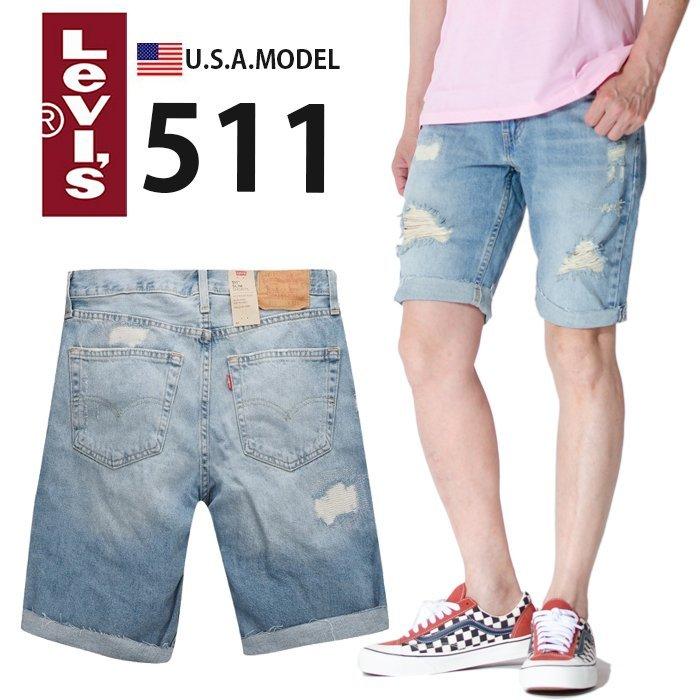 【破壞29-44腰】美國LEVIS 511 SLIM CUT-OFF SHORTS 水洗藍刀割抽鬚破痕窄管牛仔 短褲