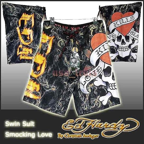 【美國Levis專賣】優惠 ED HARDY 愛殺LOVE KILL SLOWLY海灘褲 衝浪褲 黑色 短褲 33-34腰現貨