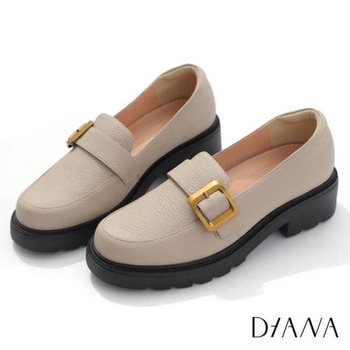 DIANA 真皮 柔軟牛皮環扣厚底樂福鞋 奶油
