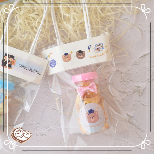 ʕ•ٹ•ʔ寶貝熊幸福手作【畢業小熊款-小尺寸】ʕ•ٹ•ʔ幼稚園禮物袋/禮品袋糖果袋/透明手提袋生日禮袋/透明手提包裝袋