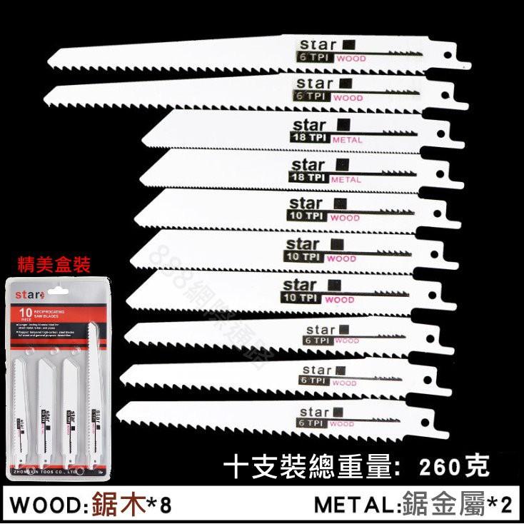 馬刀鋸、往復鋸、電鑽改電鋸....等專用鋸條 一盒共10支 ● 3支x 6" (6TPI) Wood Blades 木頭鋸條 ● 2支x 8" (6TPI) Wood Blades 木頭鋸條 ● 2支x 6" (10TPI) Metal Blades 金屬鋸條 ● 3支x 6" (18TPI) Metal Blades 金屬鋸條 ※本賣場另有賣電鑽改電鋸工具組!