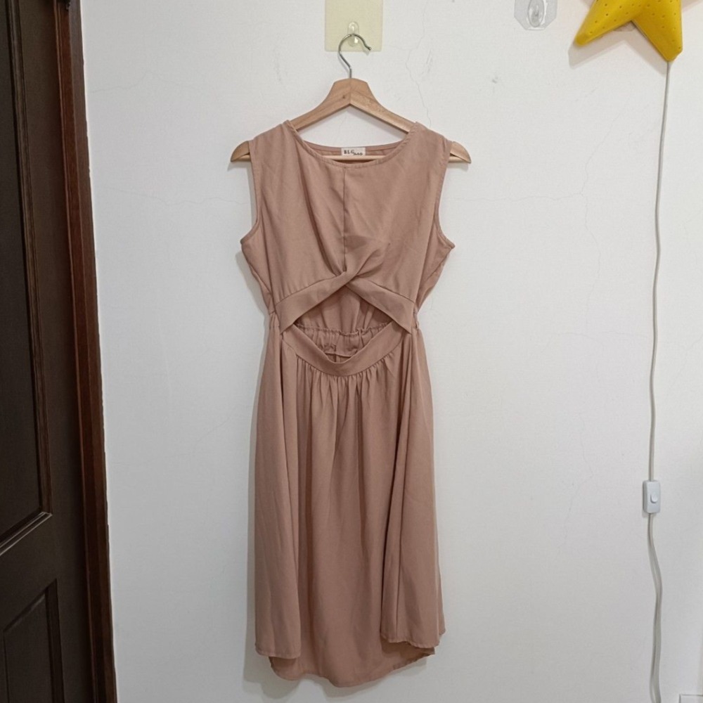 全新溫柔粉色前露腰洋裝(僅下水),新光三越百貨購入,尺寸S~L可穿.全長102公分.