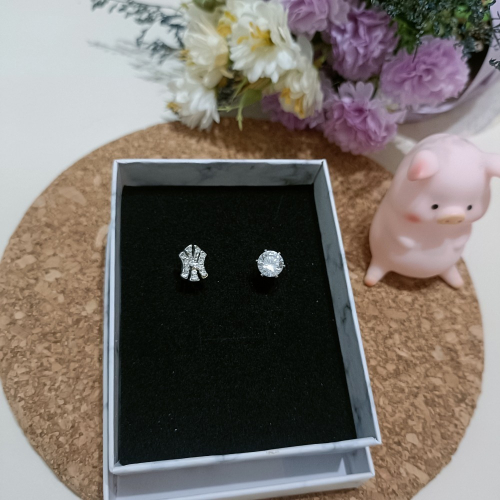 NY不對稱鋯石耳環一對,醫療鋼針