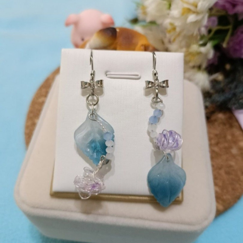 #手作水晶花耳環 .透紫不對襯勾式耳環(1對)#handmade #水晶花 #水晶花耳環#水晶花飾品 #earrings #文創飾品#文創 #uv膠耳環 !手作商品難免會有手作瑕疵,可接受者再購買,感謝您...