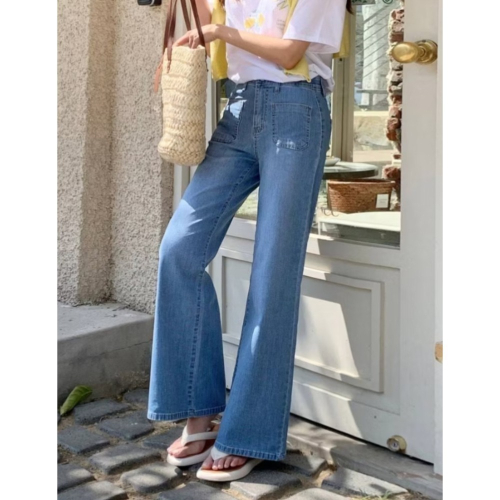 前雙口袋設計,夏季寬管牛仔褲!