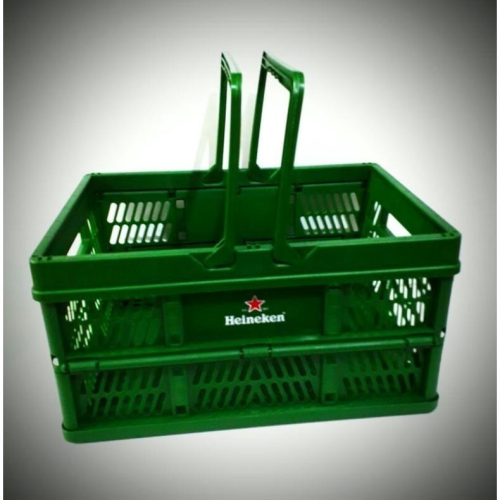 海尼根限量折疊提籃手提籃 打開尺寸 :約長38.5/寬25/高20.5公分。 限量提籃,方便收納、收藏。 #海尼根#限量#折疊提籃#手提籃
