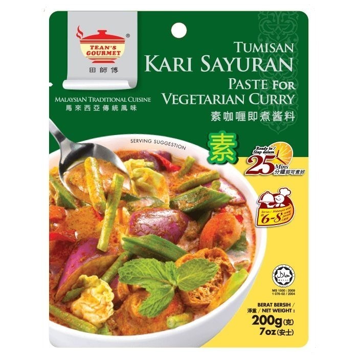因此,田師傅特別調配此款素食者友善、無蔥無蒜的素咖哩醬料配方,讓蔬食主義者也能在家隨意品嚐到清新爽口、風味絕佳的南洋咖哩!有益健康的薑黃等香料,佐以當季新鮮蔬菜如高麗菜、茄子、胡蘿蔔、 長豆、馬鈴薯、秋葵等的素食咖哩,無論春宜秋冬都能大快朵頤無負擔!