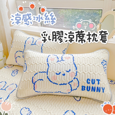 【涼感冰絲乳膠涼蓆枕頭套 一組2入/48*74cm信封式枕套/花色,隨機出貨/數量有限/售完不補】