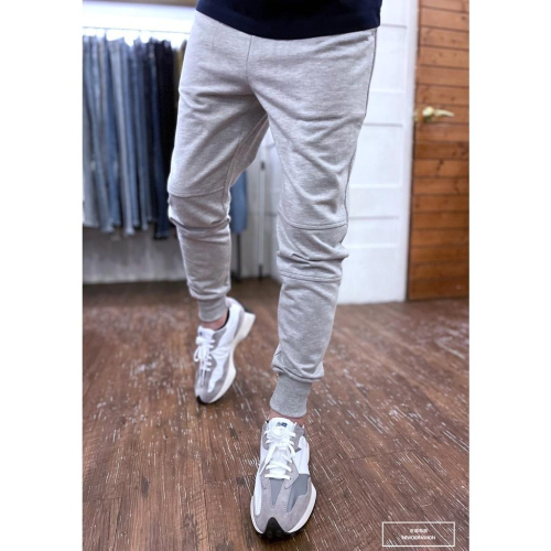 『老爺有喜』重磅拼接棉長褲-淺灰