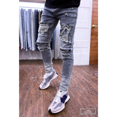 多層次重度破壞,破壞貓鬚膝拉鏈 版型超挺!彈性修身不卡卡! 五個尺寸(S、M、L、XL、XXL) *麻豆174/60穿M號尺寸拍照!